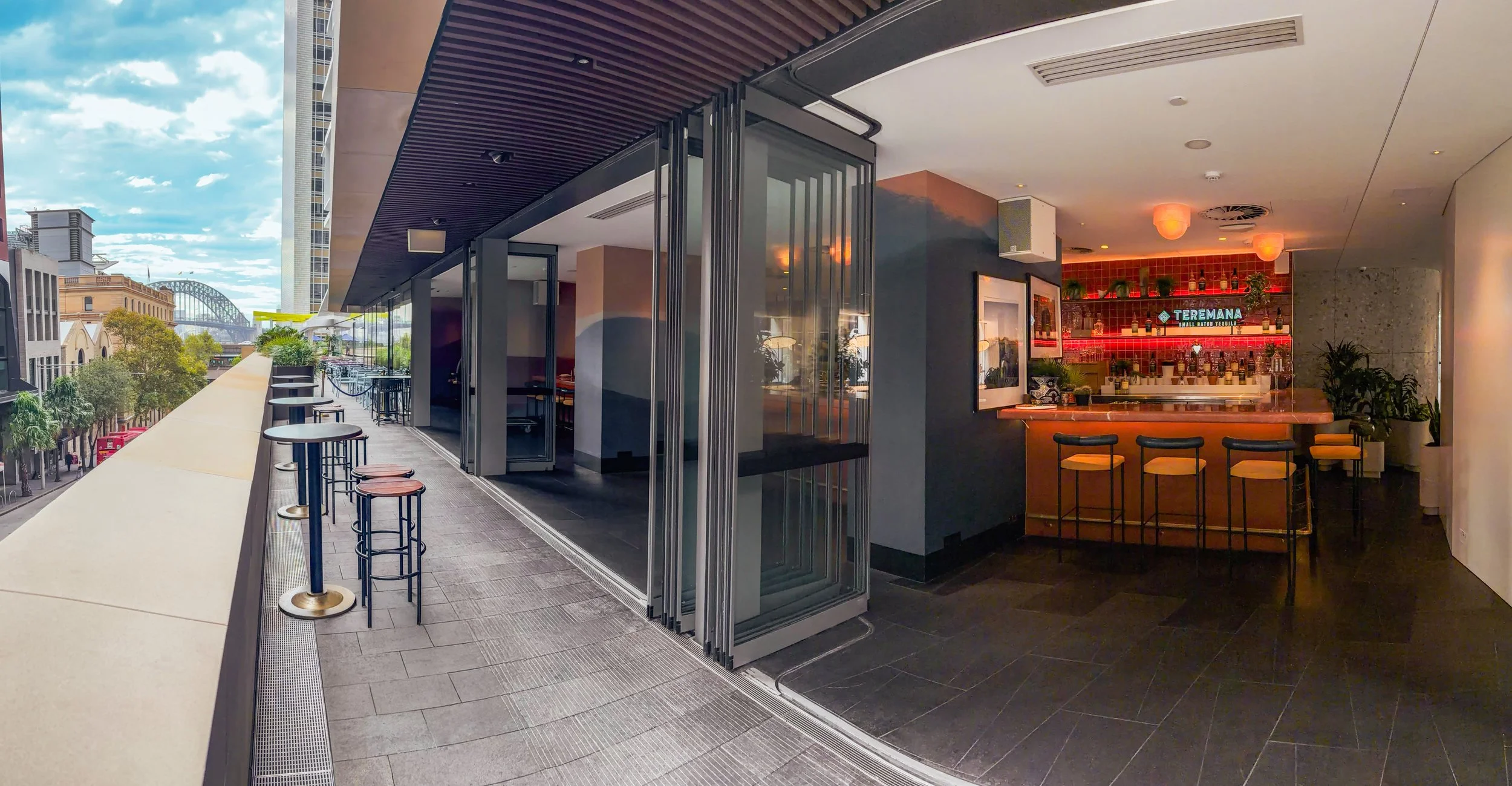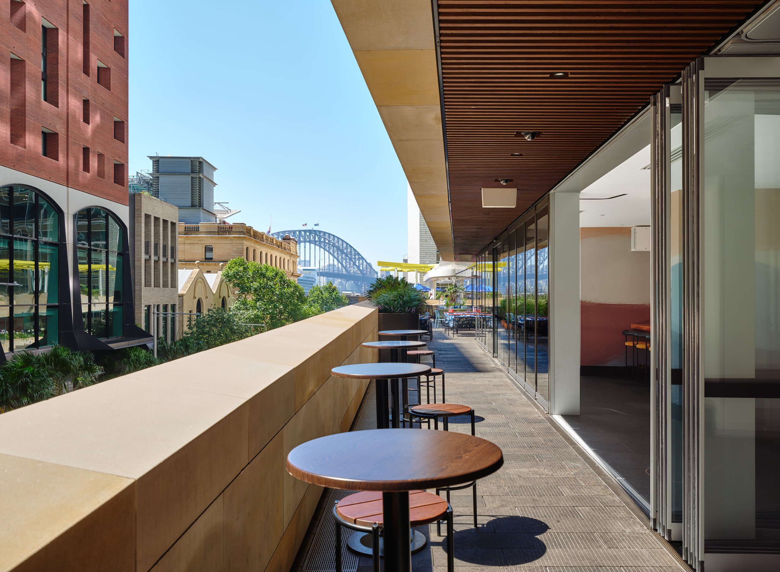 Set just off the kitchen, the Pastis Bar is where things feel a little more relaxed — an open, lively space that moves easily between indoors and out, with the western terrace opening up to Sydney Harbour Bridge views.